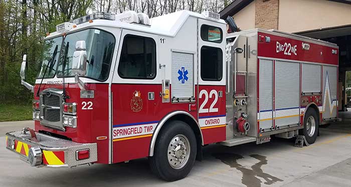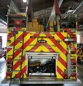 Engine 22 is a 2015 E-One Typhoon Rescue-Engine and responds on fire calls and all Auto Accidents & Rescue incidents out of Station #2. It is equipped with a1500 GPM pump, 1000 gallons of water and 30 gallons Class A Foam tank for the FoamPro system. This engine has discharges for (2) 1-3/4" 200 ft. crosslays, (1) 100ft 1-3/4" front bumper "trash" line. Off the rear of the engine it has (1) pre-connect 200ft of 2-1/2" hose, (1) pre-connect 300 ft of 2" hose, (1) 200 ft of 3" hose for a quick attack portable deluge . It carries a complement of 3" and 1000 ft. of 5" supply line and hard suction hose for drafting, Hi-Rise/Hotel pack, and NFPA ground ladder complement. Engine 22 carries a full complement of Holmatro hydraulic rescue tools, rope, and water/ice rescue equipment, sawz-all’s, rescue, chain, and portable band saws, various stabilization jacks, wood cribbing, high-pressure airbags, stokes basket & SKED, 8000lb portable electric winch with rear and side receivers, multi-gas monitoring and HCN detection equipment, RIT equipment, Hydra-Ram & K-Tool kit, electric PPV fan, and various other rescue equipment. It is equipped with a Will-Burt NightScan light tower, 10Kw PTO generator, and various other gas and electric lighting equipment. Engine 22 also carries an AED and ALS equipment to handle medical emergencies and a full ensemble of tactical EMS/Rescue Task Force gear and body armor for the crew. This truck is equipped with On-Spot tire chains, FireCom headsets, 200’ search rope bag, 2 thermal imagers, Knox KeySecure, has seating for 4 firefighters and is usually staffed with a crew of 4 for most fire calls.