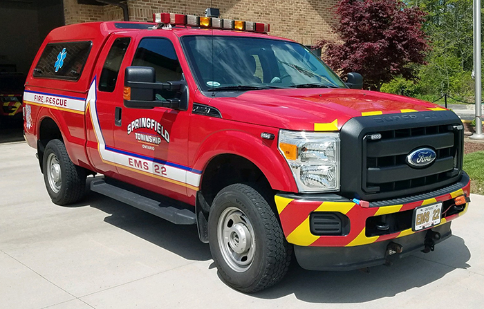 Support 22 is an all-purpose support vehicle stationed at the #2 station. Support 22 is a 2012 Ford F-350 4x4, with AED & ALS first-in bag, SCBA, body armor, Knox Key Secure, and a complement of fire extinguishers and forcible entry and hand tools.